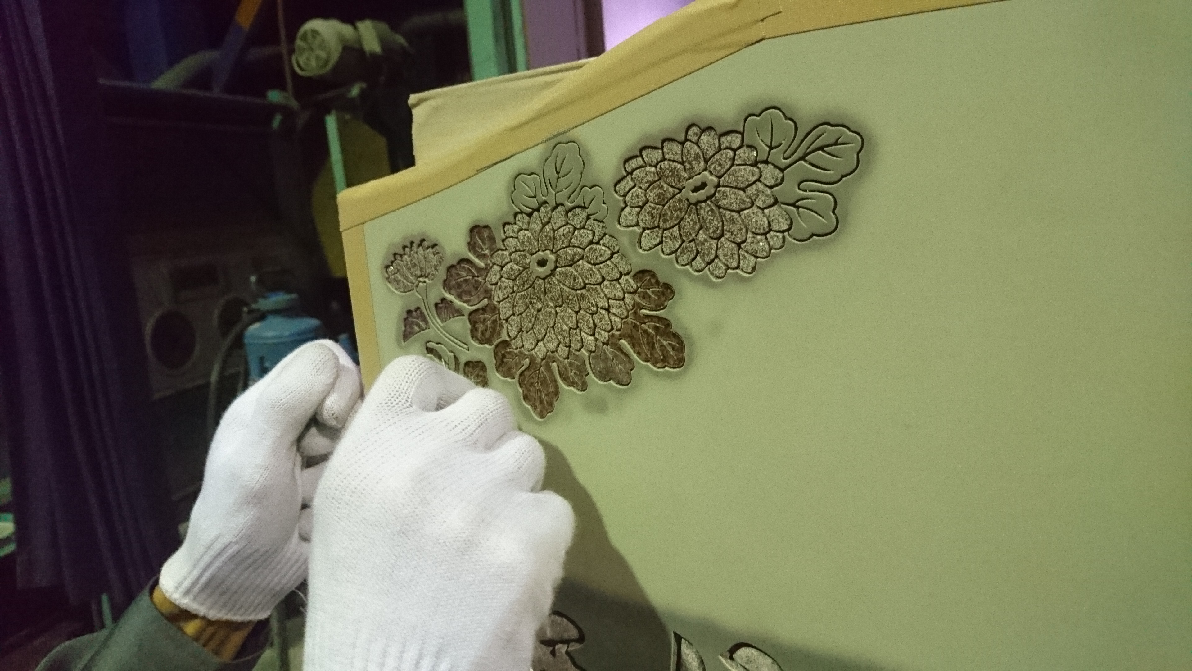 菊の花はベタっと彫ると味気ないので影彫り風にしてみました。
